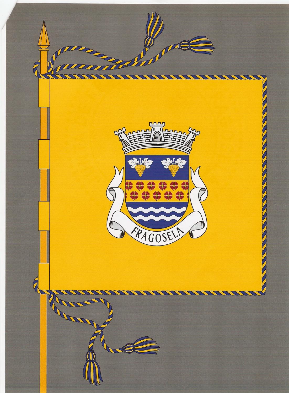 Escudo de azul, faixa de ouro semeada de quadrifólios de vermelho, botoados a ouro, acompanhada em chefe de dois cachos de uva de ouro, folheados de prata e de duas géminas ondadas de prata, em campanha. Coroa mural de prata de três torres. Listel branco, com a legenda a negro: FRAGOSELA".